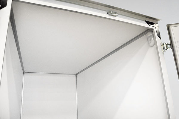 Aufbau: langlebige, pflegeleichte Sandwichpaneele (16 mm), außen weiß beschichtet