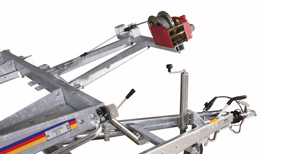 - Seilwinde (manuell) auf Bock und Schwerlaststützrad serienmäßig