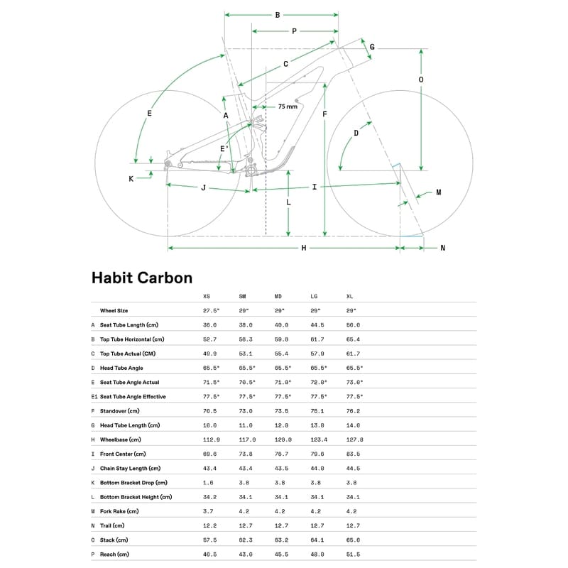 Mit einem Lenkwinkel von 65.5° und dem 77,5°-Sitzrohrwinkel tritt sich das Habit angenehm effizient bergauf und liefert dir bergab die nötige Stabilität bei Highspeed. So kannst du das volle Potenzial ausschöpfen.