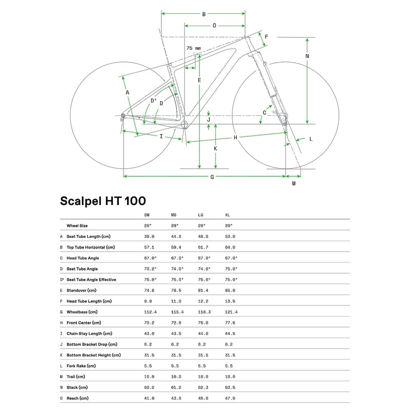 Datenblatt für Cannondale SCALPEL HT CARBON 2 – 29″ Mountainbike – 2025 – smoke black