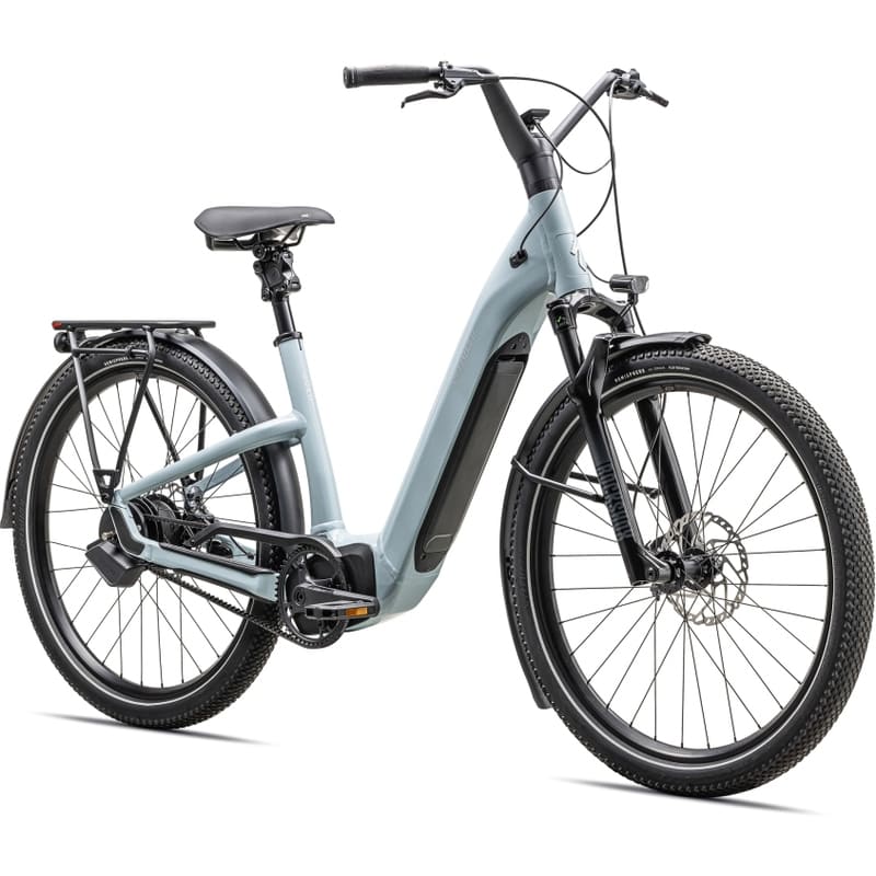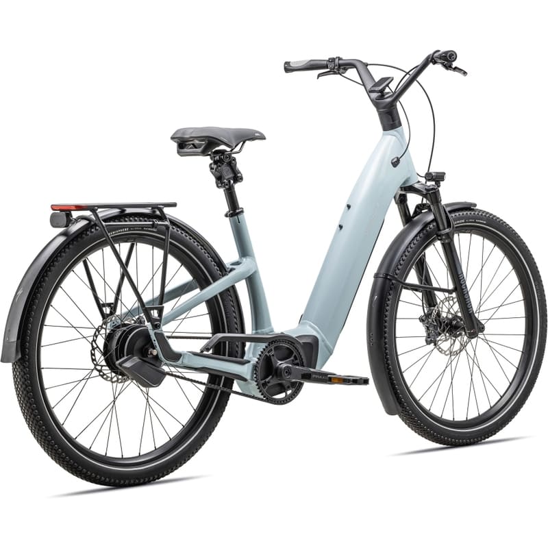 Ausgestattet mit Specialized DRYTECH Schutzblechen, LED Front- und Rücklicht und HD Gepäckträger mit bis zu 27kg Zulademöglichkeit. Der Gepäckträger ist kompatibel mit Kindersitzen und passenden Anhängern.