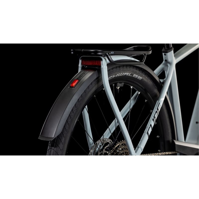 Diesem Set-up haben CUBE eine einfach bedienbare Shimano Cues 11-Gang Schaltung zur Seite gestellt, welche die Power top übersetzt aufs Hinterrad bringt. Wer mit Gepäck unterwegs ist, ob auf dem Weg ins Büro oder bei einer längeren Wochenendausfahrt, profitiert von dem anpassbaren und super stabilen integrierten Gepäckträger IC 3.0. Ein Komplettset an Zubehör verleiht diesem Tourer den letzten Schliff.