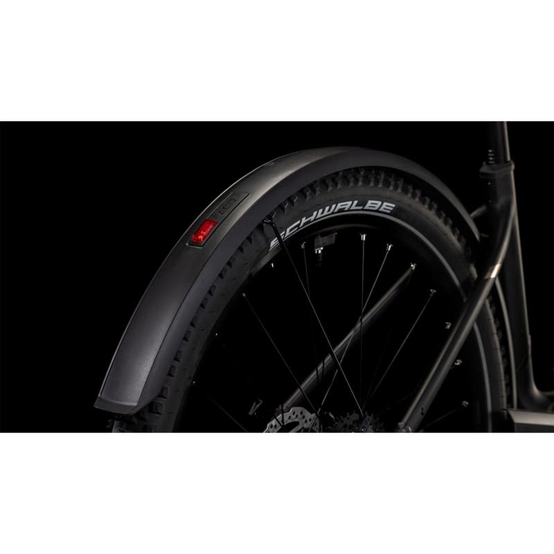 Mit den leistungsstarken hydraulischen Scheibenbremsen von Shimano wird sicher und kontrolliert gebremst. Für extra Fahrkomfort auf holprigen Wegen haben CUBE sich für eine Suntour Luftfedergabel im Team mit breiten, griffigen Schwalbe Reifen entschieden. Last, but not least das Zubehör, bestehend aus Schutzblechen, Lichtanlage und Seitenständer. Damit steht dieses Bike allzeit für jede Tour bereit.