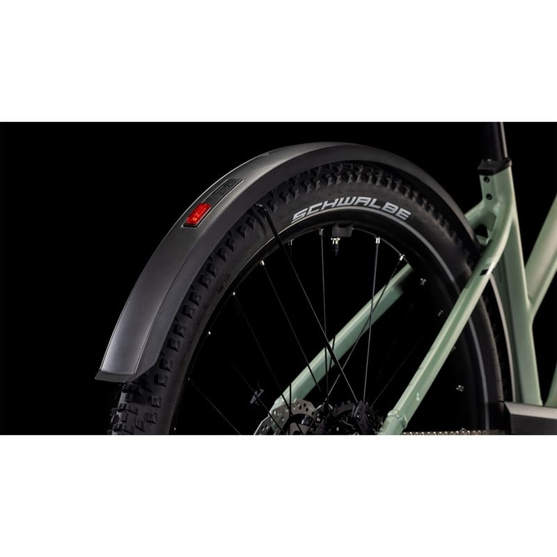 Mit den leistungsstarken hydraulischen Scheibenbremsen von Shimano wird sicher und kontrolliert gebremst. Für extra Fahrkomfort auf holprigen Wegen haben CUBE sich für eine Suntour Luftfedergabel im Team mit breiten, griffigen Schwalbe Reifen entschieden. Last, but not least das Zubehör, bestehend aus Schutzblechen, Lichtanlage und Seitenständer. Damit steht dieses Bike allzeit für jede Tour bereit.
