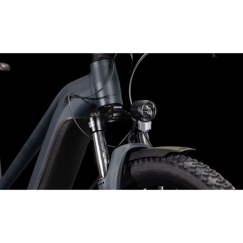 Selbstverständlich haben CUBE auch an ein Zubehörsset für höchste Vielseitigkeit gedacht: Schutzbleche, Lichter, Seitenständer. Eine 100 mm Federgabel kümmert sich um diverse Schlaglöcher und Buckel auf der Straße und den Trails. Die einfach zu bedienende Cues 9-fach Schaltung von Shimano macht jede Tour zum Spaziergang. Last, but not least ermöglichen dazu passende hydraulische Shimano Scheibenbremsen kraftvolle und sichere Bremsmanöver.