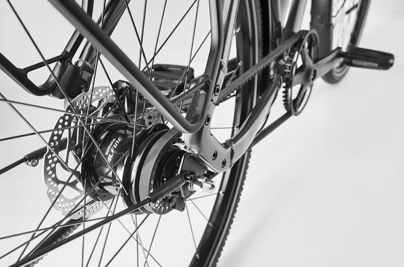 - Clever Frame-Technologie macht es einfach, trotz Riemenantrieb das Hinterrad ein- und auszubauen, sei es für reguläre Inspektionen oder bei einem platten Reifen unterwegs.