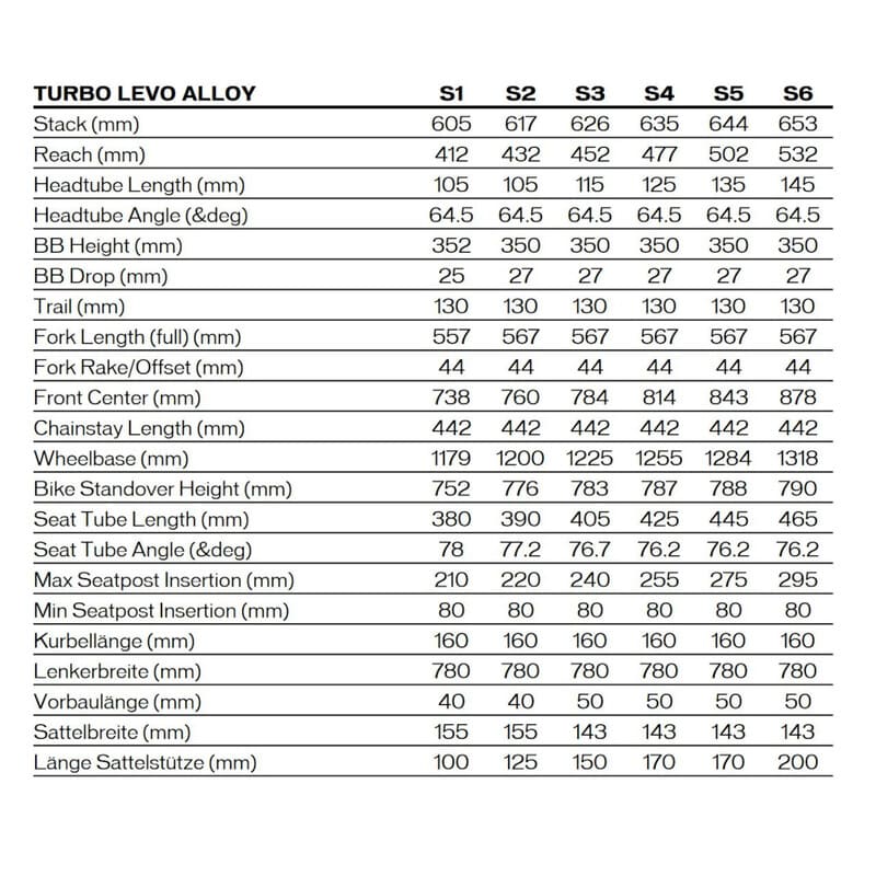Datenblatt für Specialized TURBO LEVO COMP ALLOY – E-Mountainbike – 2025 – black / dove grey / black