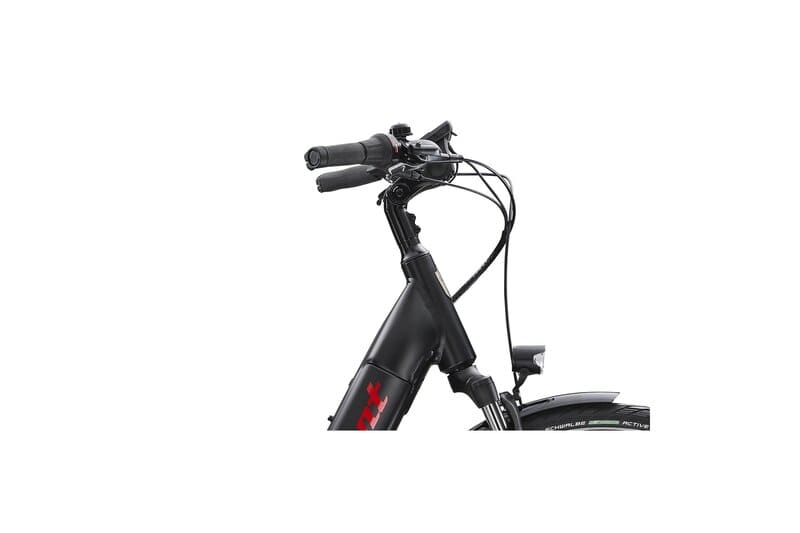 Der verstellbare Vorbau und die gefederte Sattelstütze sorgen für optimalen Komfort. Das Elektrofahrrad gleicht Unebenheiten auf der Straße aus. Der breite Sattel bietet zusätzlichen Sitzkomfort. Die ergonomischen Griffe entlasten Ihre Hände auch bei langen Fahrten.
