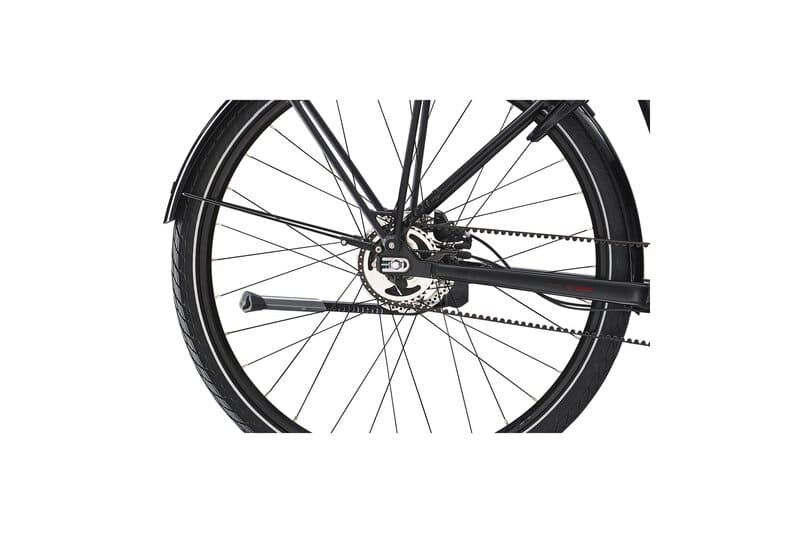 Das Fahrrad verfügt über eine Shimano-Nabenschaltung. Die 8 Gänge ermöglichen ein sanftes Schalten. Der wartungsarme Riemenantrieb ersetzt die traditionelle Kette. Er bietet leisen und gleichmäßigen Antrieb. Zudem reduziert der Riemenantrieb den Verschleiß. Das Ergebnis ist eine längere Lebensdauer des gesamten Antriebssystems.
