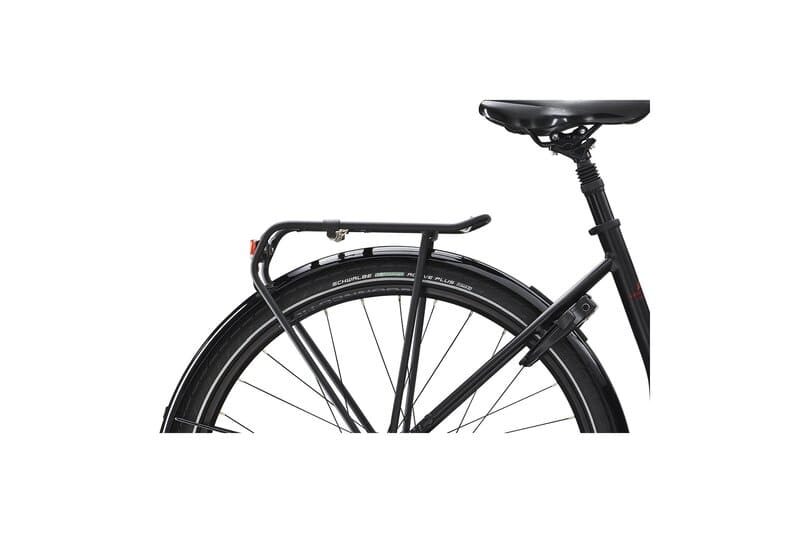 Das Fahrrad ist kompatibel mit verschiedenen Zubehörteilen, darunter Gepäckträger, Körbe und Kindersitze. Mit einem robusten Gepäckträger und Schutzblechen ist es ideal für Pendler.