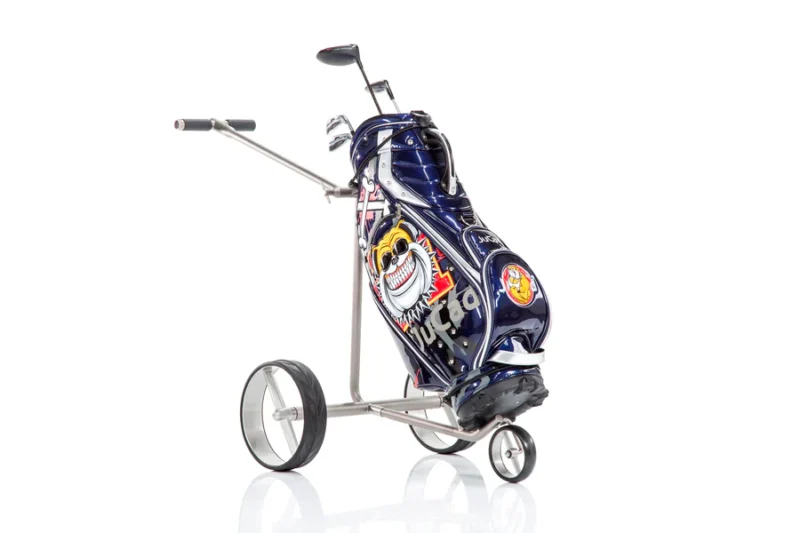 Das Elektrotrolley JuCad Elektro-Golftrolley sorgt für optimalen Komfort und beinhaltet leise Brushless Motoren mit einer beidseitigen Parkbremse für sicheren Halt auf steilstem Gelände sowie Magnetstecker und eine integrierte Ladestandsanzeige. Dank seiner komfortablen Falttechnik wird der Caddy in Sekundenschnelle auf ein superflaches Packmaß gebracht und verstaut.