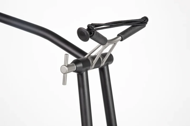 - Gleichzeitige Fixierung der höhenverstellbaren Griffstange und der oberen Baghalterung mit praktischem Flügelgriff