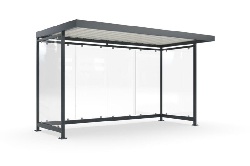 Die Cologne L Fahrradüberdachung zeichnet sich durch ihre robuste Stahlbauweise aus Vierkantrohr aus, die durch Feuerverzinkung und einer Farbbeschichtung gegen Witterungseinflüsse und Vandalismus geschützt ist. Sie können zwischen dem standardmäßigen Anthrazitgrau (RAL 7016) oder einer Farbe Ihrer Wahl wählen – hoher Korrosionsschutz (C4 medium Qualität) gewährleistet.