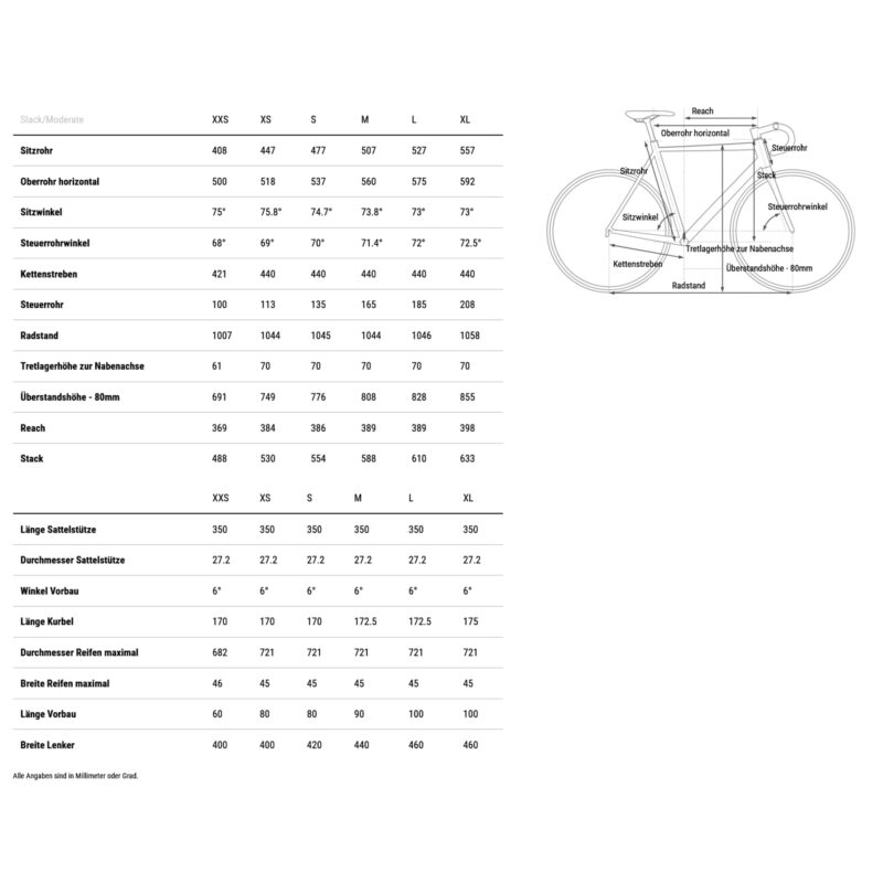 | Reifen: | XXS: Continental Terra Trail | 40-584 / XS-XL: Schwalbe G-ONE Allround Performance Line | 45-622 |