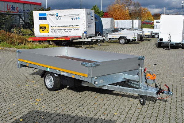 Durch die Hochlader-Konstruktion mit unter der Ladefläche montierten Rädern steht die volle Ladebreite zur Verfügung – ideal für Paletten, Baumaterialien, Möbel oder Maschinen. Die gebremste Einzelachse ermöglicht dabei nicht nur ein hohes Maß an Kontrolle und Sicherheit, sondern bleibt gleichzeitig kompakt und wendig.