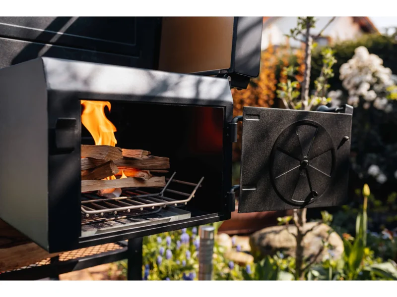 Dir ist nach dem schmackhaften Aroma des Holzkohlefeuers? Dann kann dich der Holzkohlebereich mit einer Grillfläche von 42 cm x 27,3 cm sicherlich überzeugen. Er zeichnet sich durch seine höhenverstellbare Kohleebene aus. Durch die 6-stufige Hebevorrichtung sowie den Lüftungsschieber kannst du die Grilltemperatur optimal steuern. Je nachdem, wie weit die Glut von dem Grillrost entfernt ist, verändert sich die Temperatur am Grillgut.