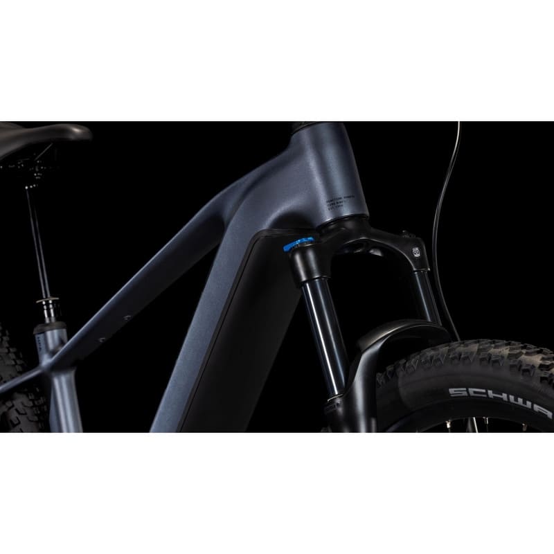 Die normale Sattelstütze haben CUBE durch eine versenkbare ersetzt, weil sie das Handling besonders auf ruppigeren Trails um ein Vielfaches zuverlässiger macht. Ebenso zuverlässig: die XT 12-Gang Schaltung von Shimano mit ihrem weiten Übersetzungsbereich, die griffigen 2.6 Zoll Reifen von Schwalbe und die leistungsstarken hydraulischen Shimano Scheibenbremsen für präzises Verzögern und Anhalten. Dazu das Sahnehäubchen: der geräuscharm und zugleich kraftvoll arbeitende neue Bosch CX Motor, der von einem 800Wh PowerTube Akku gespeist wird und geschmeidige Unterstützung im Vorwärts liefert. Selbst anspruchsvolle Routen werden damit zum Hochgenuss.
