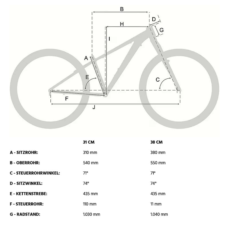 | Hinterbausystem: | Hardtail (ungefedert) |