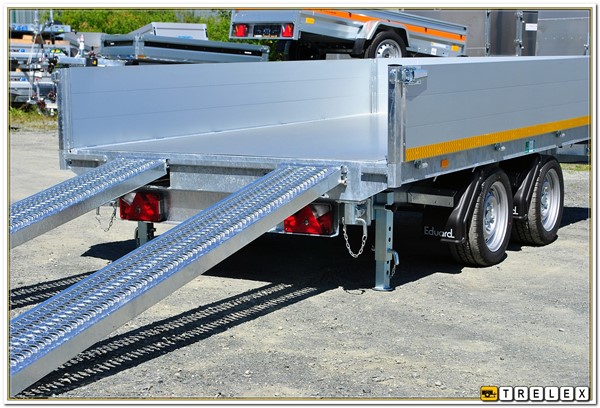 Der Kipper Tandem / Tridem ab 3m Eduard K 3318 P/R ist ein extrem robuster, leistungsstarker Dreiseitenkipper in Tandem- oder Tridemausführung, ausgestattet mit einem verstärkten Profi-Rahmen („P/R“) und integrierten Auffahrrampen. Mit einer Ladefläche von 3,31 m Länge und 1,80 m Breite, einem zulässigen Gesamtgewicht von bis zu 3.500 kg und einer Kippfunktion nach drei Seiten ist dieser Anhänger optimal für professionelle Anwendungen in Bau, Garten- und Landschaftsbau, Landwirtschaft und kommunalen Bereichen.