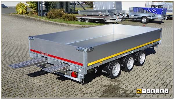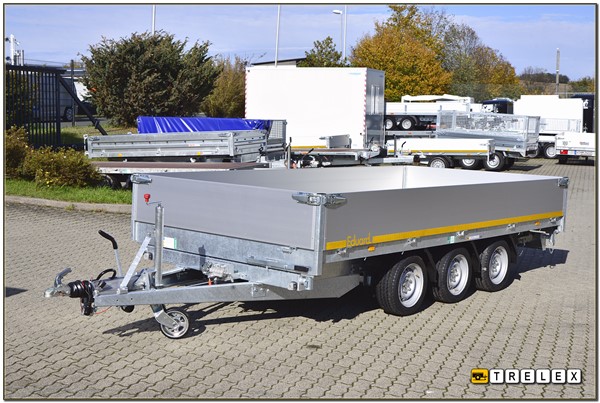 Der Kipper Tandem / Tridem ab 3m Eduard K 4020 ist ein hochwertiger und besonders robuster Dreiseitenkipper mit einer großzügigen Ladefläche von 4,02 Metern Länge und 1,80 Metern Breite, der sich durch seine Flexibilität und hohe Nutzlastkapazität auszeichnet. Als Tandem- oder Tridemanhänger konzipiert, eignet sich dieses Modell hervorragend für anspruchsvolle Transportaufgaben in Bau, Landwirtschaft, Garten- und Landschaftsbau sowie bei kommunalen Dienstleistern.