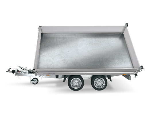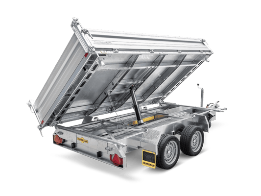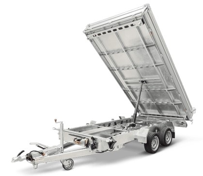 Dank der serienmäßigen Elektrohydraulik lässt sich die Ladefläche mühelos nach hinten, links oder rechts kippen, ganz bequem per Knopfdruck. Der Anhänger ist sowohl mit 3.000 kg (HTK 3000.37) als auch mit 3.500 kg zulässigem Gesamtgewicht (HTK 3500.37) erhältlich – je nach Nutzlastbedarf und Einsatzbereich.