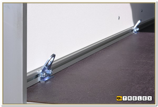 - FlexZurr: integriertes Zurrsystem mit seitlicher Schiene am Wandfuß und verschiebbaren Zurrösen