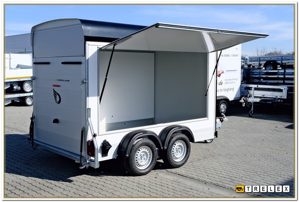 Der Kofferanhänger Tandem Debon Roadster C500 ist ein hochwertiger Tandem-Kofferanhänger, der speziell für den intensiven gewerblichen Einsatz konzipiert wurde. Ob als mobiler Verkaufsanhänger, Showroom auf Rädern, Technik-Transporter oder mobiler Servicepoint – dieser Anhänger erfüllt höchste Anforderungen an Design, Funktion und Flexibilität.