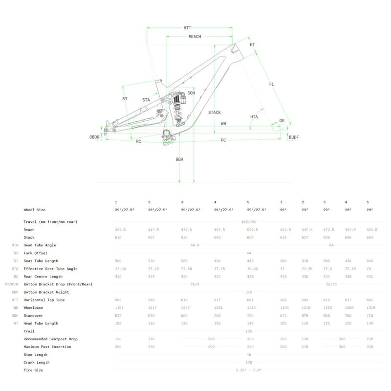 | Sattelstütze Modell: | One Up adjustable dropper | 34.9mm | Travel: 150mm (1), 180mm (2), 210mm (3, 4), 240mm (5) |