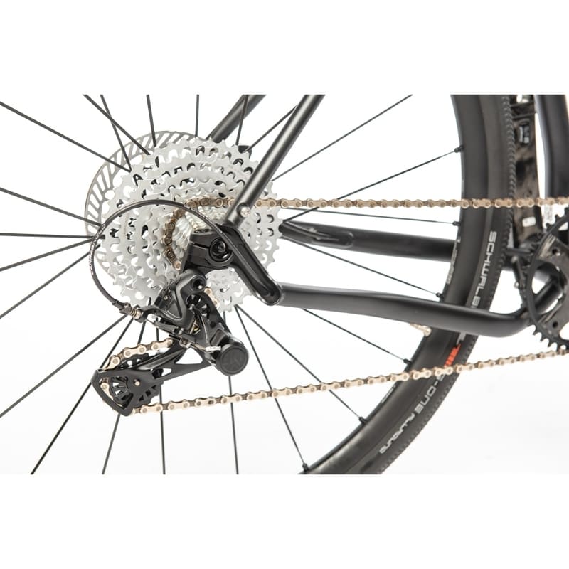 Mit dem Grifn A haben Sie die Möglichkeit, Reifen bis zu 38mm zu verwenden, und wenn Sie sich für einen 1x Antrieb entscheiden, können Sie sogar bis zu 40mm gehen. Mit 38mm haben Sie in der Regel ausreichend Möglichkeiten, verschiedene Schotterherausforderungen zu bewältigen. Dies gewährleistet ein Gleichgewicht zwischen Geschwindigkeit und Wendigkeit einerseits und Komfort und Stabilität andererseits.