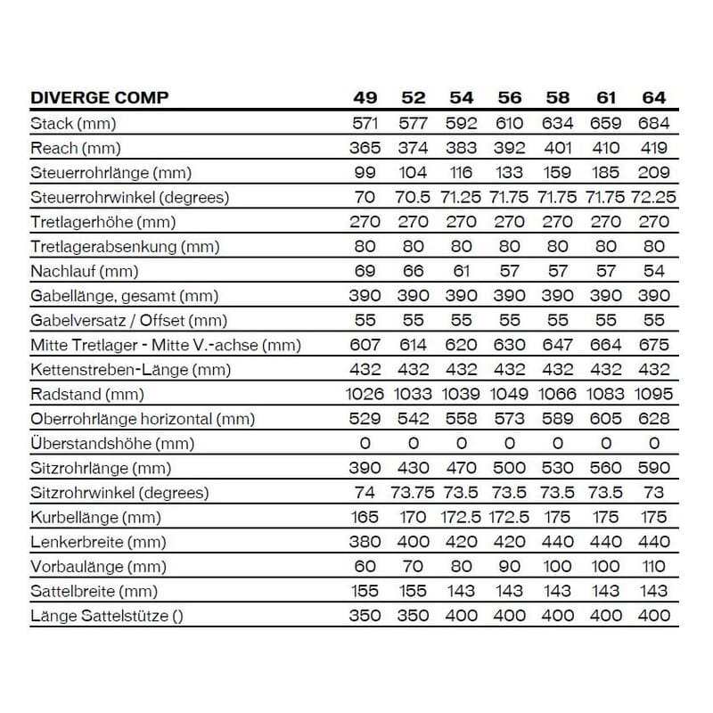 Specialized hat den „Status-Quo“ der Gravel-Geometrien aus dem Fenster geworfen. Das neue Diverge hat eine der progressivsten Geometrien, die Specialized je für ein Bike mit Drop-Bar entworfen hat. Dies ermöglicht es, dir einen Rahmen mit sehr ausgewogenen Fahreigenschaften zu präsentieren. Specialized hat den Reach verlängert, den Lenkwinkel abgeflacht und eine Gabel mit längerem Offset ausgestattet. Dies zusammen ergibt eine Plattform, welche auf Schotter und unwegsamem Gelände Vertrauen und Fahrstabilität vermittelt. Dies gepaart mit kürzeren Vorbauten sorgt dafür, dass sich der Lenker nicht zu weit entfernt und die Lenkung dynamisch bleibt. Die Tiefe des Tretlager ist so gewählt, dass auch 650b Laufräder montiert werden können, aber die Laufruhe beibehalten wird.