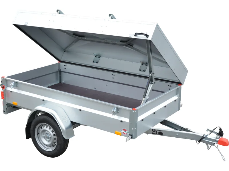 Der Stema Anhänger Basic 750 inkl. ist ein ungebremster Einachs-Anhänger mit montiertem Metalldeckel. Dadurch eignet sich der Anhänger hervorragend für den Transport witterungs- und diebstahlgeschützter Güter.