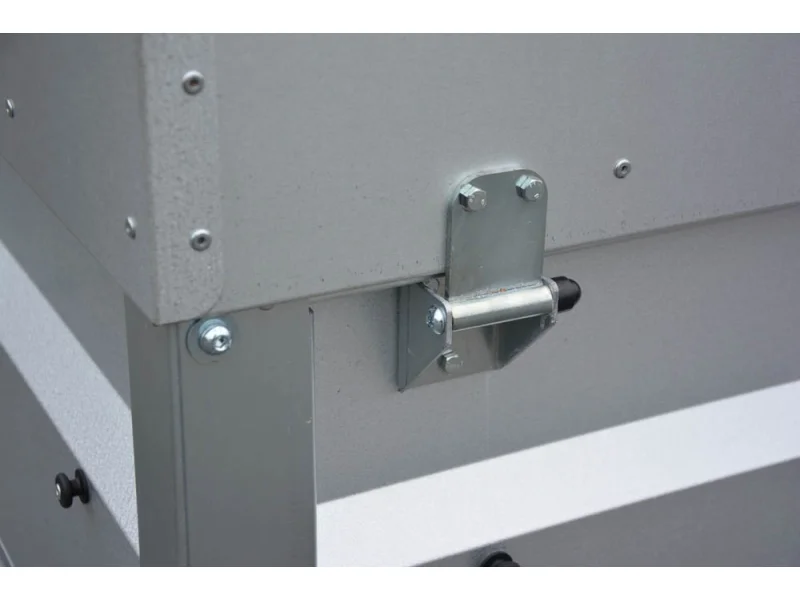 In der Ladefläche des Anhängers befinden sich insgesamt vier stabile Verzurrhaken, die eine sichere und zuverlässige Befestigung des Ladeguts ermöglichen. Zusätzlich sorgt eine quer verlaufende Traverse im Rahmen für eine verbesserte Bodenunterstützung sowie eine erhöhte Stabilität und Verwindungssteifigkeit der Ladefläche – insbesondere bei hoher Belastung.