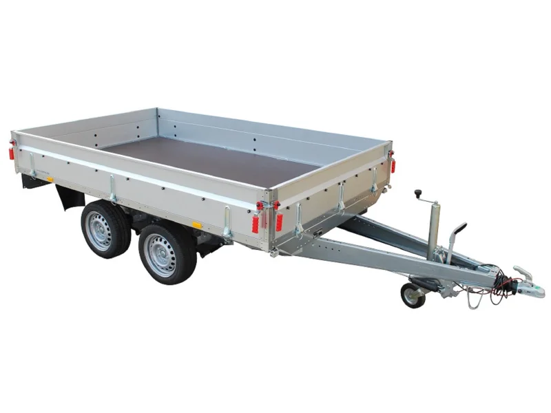 Die Doppelachse mit insgesamt vier Rädern sorgt für eine höhere Traglast und einen stabileren Stand des Hängers. Gipskartonplatten, Holz, aber auch Möbel und andere sperrige Dinge lassen sich so sicher verladen und transportieren. Dafür ist eine Nutzlast von 1632 kg möglich.