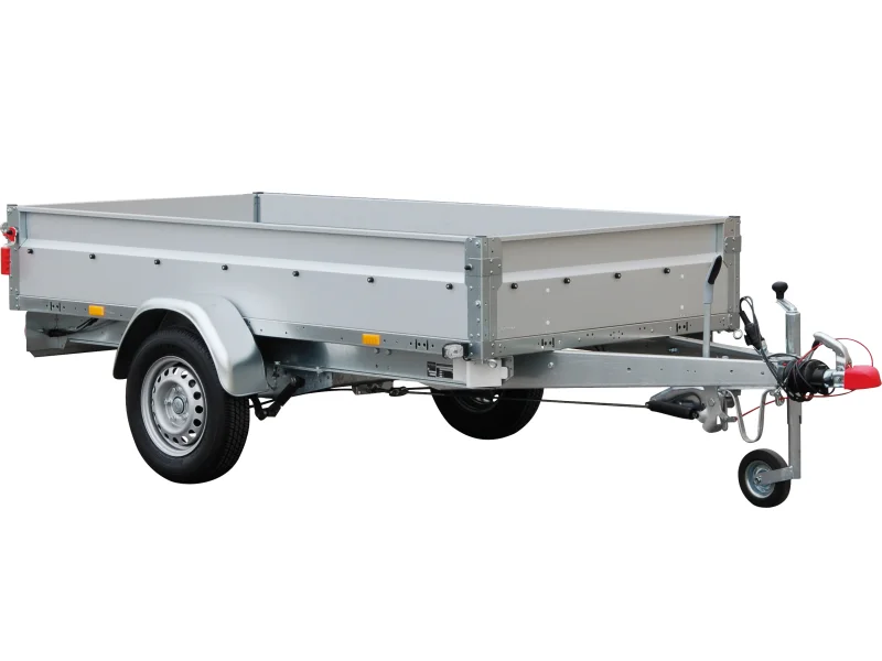 Der Anhänger Stema Basic ST 1000-25-13.1 in stabiler und strapazierfähiger Ausführung hat ein maximal zulässiges Gesamtgewicht von 1.000 kg, ist auflaufgebremst und mit Rückfahrautomatik ausgestattet.
