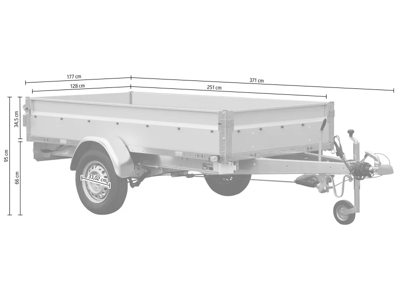 Die maximale Zuladung von 740 kg lassen den Transport von schweren Gütern mühelos zu. Für eine gute Straßenlage sorgen dabei die stabile Verarbeitung und die serienmäßig eingebauten Stoßdämpfer. Mit seiner 2,51 m langen und 1,28 m breiten Ladefläche eignet sich der Basic ST 1000-25-13.1 zur Nutzung im privaten und gewerblichen Einsatz.