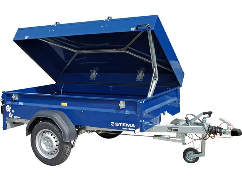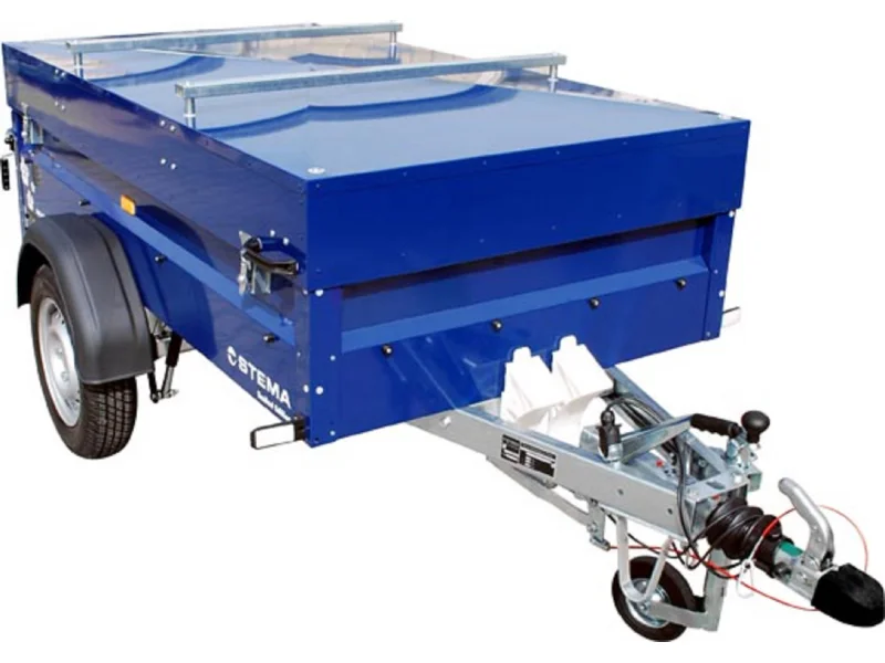 Mit dem Stema Anhänger Blue Man 850 sind Sie perfekt für den Pkw-Urlaub gerüstet. Das Fassungsvermögen von 1250 Litern sorgt für ausreichend Stauraum und mit dem verschließbaren Metalldeckel ist Ihr Transportgut vor jeder Witterung geschützt.