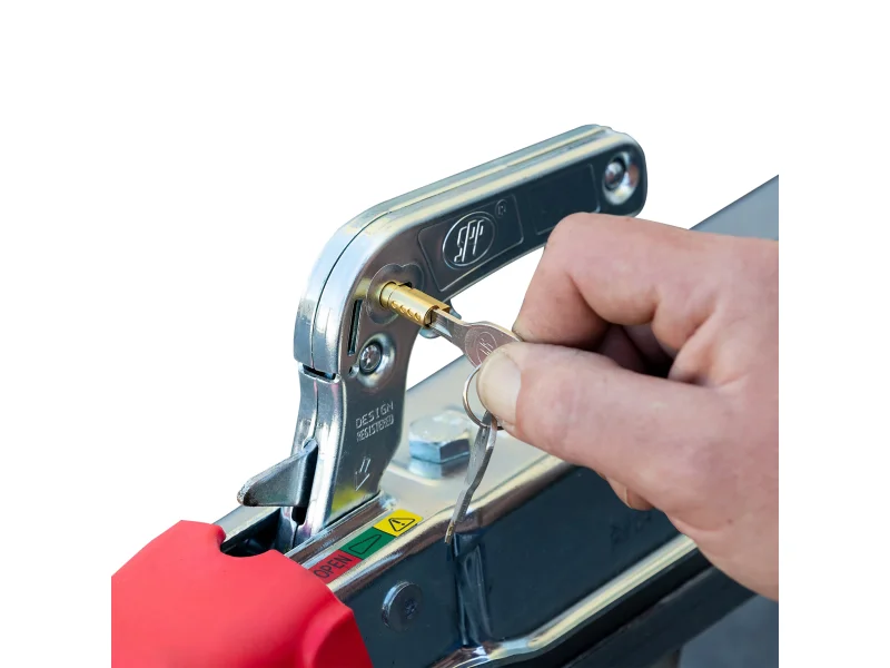 – 7-poliger Elektroanschluss – Stema-Sicherheitsverschlüsse an der Rückwand mit roten Soft-Griffen