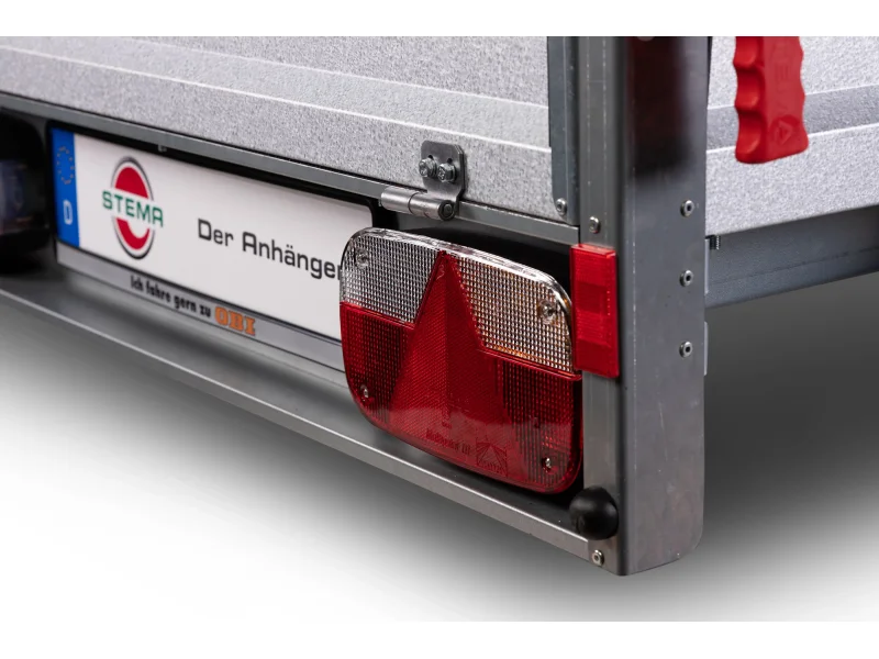 Den Stema Variolux 850 zeichnen wartungsarme Kompaktradlager, eine Qualitätsgummifederachse, großdimensionierte Multifunktionsrückleuchten inklusive Nebelschlussleuchte und Rückfahrscheinwerfer und viele revisionsfreundliche Schraubverbindungen aus. Die 4 Verzurrhaken auf der Ladeflächen bieten zusätzliche Verzurrpunkte.