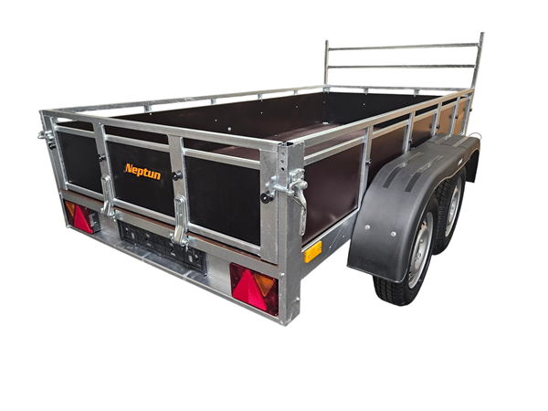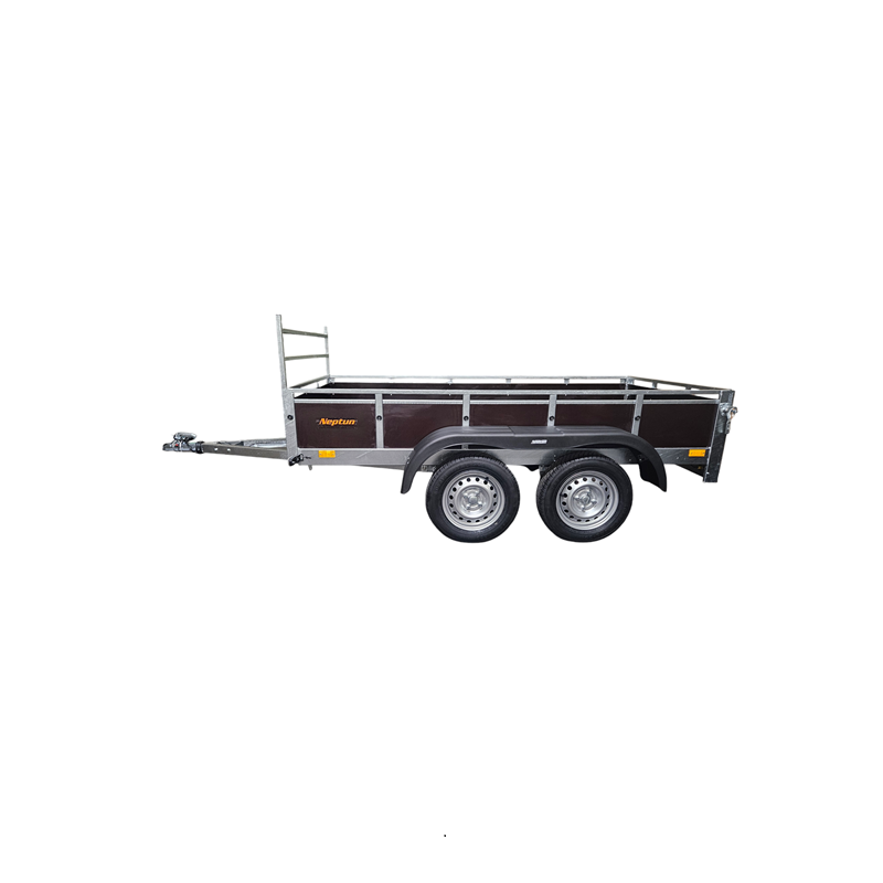 Der Neptun Trailwood N7-253-2 Tandem überzeugt durch seine robuste, vollverzinkte Stahlrahmenkonstruktion, die ihn besonders widerstandsfähig gegenüber Witterungseinflüssen und mechanischen Belastungen macht. Die stabile Plattform, kombiniert mit den beiden Achsen, bietet ein hohes Maß an Fahrstabilität, Spurstabilität und Kippsicherheit.