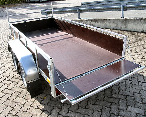 Dank seiner Doppelachse (Tandem-Ausführung) bietet dieser Anhänger ein besonders ruhiges Fahrverhalten, auch bei unebenem Untergrund, sowie eine erhöhte Standfestigkeit beim Be- und Entladen.