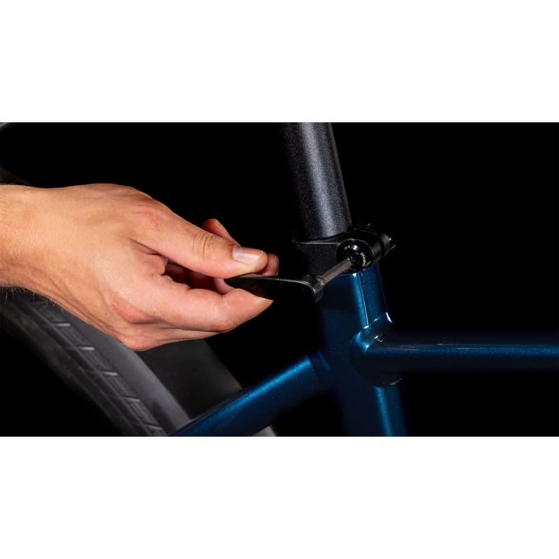 Bei jedem Wetter sicher und zuverlässig gebremst wird mit den kräftig zupackenden hydraulischen Scheibenbremsen. Außerdem bieten CUBE das Modell mit vielen verschiedenen Rahmenvarianten und -größen an. Praktisch: Weil CUBE auch an einen Gepäckträger, Schutzbleche, eine Lichtanlage und einen Seitenständer gedacht haben, fühlt sich dieser Allrounder auf dem Weg ins Office ebenso wohl wie bei der Ausfahrt ins Grüne.